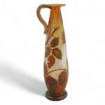 DAUM # Nancy Pichet en verre multicouche à décor dégagé à l'acide de feuilles, la prise appliquée, signé au-dessous H.: 20.2 cm