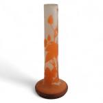 GALLE Vase en verre multicouche à décor dégagé à l'acide de fleurs, de forme tubulaire reposant...