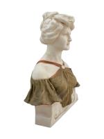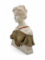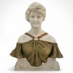 ROYAL DUX BOHEMIA Jeune femme Buste en céramique émaillée, cachet triangulaire au dessous Epoque Art Nouveau H.: 45 cm l.: 36 cm