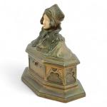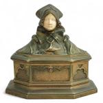 LOUCHET Boite couverte en bronze, le couvercle à décor d'un buste de femme, pastille ronde du fondeur H.: 15 cm l.: 16 cm