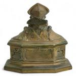Boite couverte en bronze, le couvercle à décor d'un buste...
