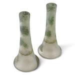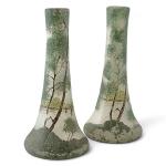 LEGRAS Paire de vases en verre à décor peint d'un paysage lacustre avec bateaux et arbres, non signés Epoque Art Nouveau H.: 20.8 cm