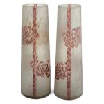 attribué à LEGRAS Paire de vases tubulaire en verre double à décor floral sur fond givré H.: 30.5 cm