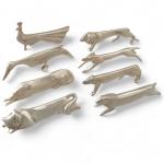 Édouard Marcel SANDOZ (1881-1971) designer, GALLIA éditeur Suite de huit portes couteaux en métal argenté figurant des animaux L.: 10.2 cm