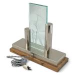 attribué à SOFAR Lampe en verre et métal chromé sur une base en bois, le plaque de verre à décor d'une Diane chasseresse Epoque Art Déco H.: 32 cm l.: 35 cm P.: 13 cm