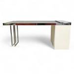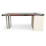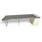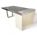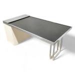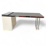 Bois laqué, acier chromé, le plateau extensible à support déroulant coulissant sur glissières à encadrement métallique et revêtement en caoutchouc