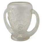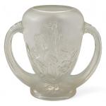 Vase en verre en partie opalescent à décor floral, deux anses latérales, signé
