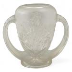 VERLYS France Campanules Vase en verre en partie opalescent à décor floral, deux anses latérales, signé Années 1930 H.:...