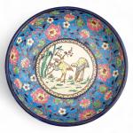 LA LOUVIERE Coupe creuse ronde en faïence à décor polychrome de deux hérons dans une réserve sur un fond de fleurs H.: 7 cm D.: 26.5 cm