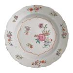 CHINE Compagnie des Indes Assiette ronde en porcelaine à décor famille rose de fleurs XVIIIème D.: 23 cm (petites égrenures)