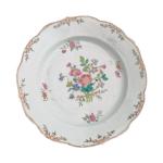 CHINE Compagnie des Indes Assiette ronde en porcelaine à décor famille rose de fleurs XVIIIème D.: 23.3 cm (égrenures)