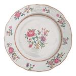 CHINE Compagnie des Indes Assiette ronde en porcelaine à décor famille rose de fleurs XVIIIème D.: 23 cm (légers sauts d'émail)