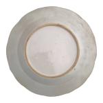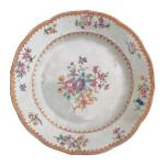 CHINE Compagnie des Indes Assiette ronde en porcelaine à décor famille rose de fleurs et fers de lance XVIIIème D.: 23 cm (restaurations)