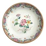 Coupe ronde en creuse en porcelaine à décor famille rose de fleurs