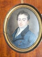 HIPOLITE (XIXème) Portrait d'homme Miniature à vue ovale, signée au milieu à gauche 6.7 x 5.3 cm à vue