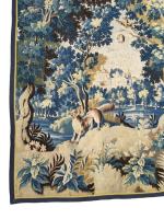 AUBUSSON Tapisserie à décor de la Fable "Le renard et le corbeau" de Jean de la Fontaine XVIIIème 206 x 172 cm (fragment, restaurations ,accidents, doublée)