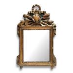 MIROIR A FRONTON en bois sculpté, mouluré et doré Style Louis XVI 67 x 41.5 cm (petits accidents)