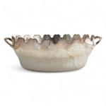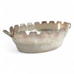 VERRIERE ovale en métal argenté, agrémentée de deux anses latérales H.: 10.5 cm l.: 33.5 cm P.: 20.5 cm