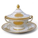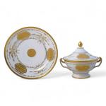 PARIS Bouillon couvert et son dormant en porcelaine à décor or XIXème H.: 15 cm