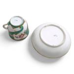 SEVRES Tasse et sa soucoupe en porcelaine à décor polychrome et or, marque au revers H. (tasse): 5.4 cm D. (soucoupe): 12 cm
