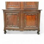 BUFFET DEUX CORPS nantais en acajou sculpté et mouluré, la partie basse ouvrant à deux portes, dégageant un intérieur avec deux tiroirs et une étagère, la partie haute ouvrant à deux portes dégageant un intérieur avec étagères