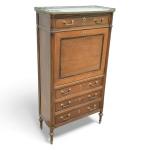 SECRETAIRE en acajou et placage d'acajou ouvrant à quatre tiroirs et un abattant, dessus de marbre à galerie Style Louis XVI H.: 143.5 cm l.: 77 cm P.: 34 cm (accidents et manques)