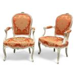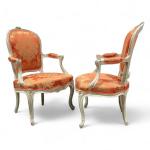 Paire de FAUTEUILS en bois sculpté, mouluré et rechampi Style Louis XV