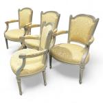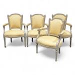 Suite de quatre FAUTEUILS en bois sculpté, mouluré et rechampi de forme cabriolet Epoque Louis XVI