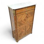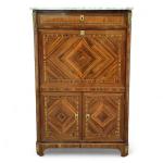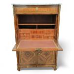 SECRETAIRE en bois de placage et marqueterie ouvrant à deux portes en partie basse, surmontées d'un abattant et un tiroir, dessus de marbre