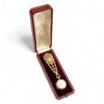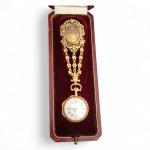 MONTRE de col en or jaune et sa chatelaine en or et vermeil richement décoré poids brut 54.2 g dans son écrin