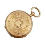 MONTRE de col en or jaune double cuvette or fond gravé écusson poids 22.8 g brut