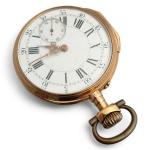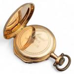 MONTRE GOUSSET en or jaune poids brut 79.5 g double cuvette or remontoir plaqué or, avec écrin