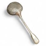 CUILLERE A SAUPOUDRER en argent, modèle filets, gravée d'armoiries d'alliance...