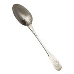 CUILLERE A RAGOUT en argent, modèle uniplat, gravée d'armoiries d'alliance sous une couronne de marquis Rennes, 1769 Maitre orfèvre: Michel Eloi LETAILLEUR, reçu en 1739 L.: 30.5 cm Poids: 136 gr