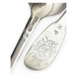 Suite de trois FOURCHETTES et deux CUILLERES en argent, modèle uniplat, chiffrées dans un médaillon sous une couronne de comte