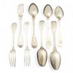 Cinq CUILLERES et trois FOURCHETTES en argent, différents modèles, chiffrées Paris, 1798-1809 à Minerve Poids: 599 gr