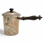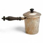LAITIERE couverte en argent uni, le col agrémenté d'un verseur, les prises en bois noirci Paris, 1819-1838. Orfèvre: Théodore TONNELIER, insculpation en 1798 H.: 12 cm Poids brut: 210 gr (petits chocs)