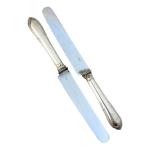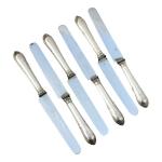 Suite de six COUTEAUX DE TABLE en argent fourré, les lames en acier signées ODIOT Minerve L.: 26.5 cm Poids brut: 560 gr