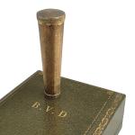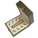 MANCHE D'OMBRELLE en vermeil à décor sur fond amati, accompagné de ses huit baleines Minerve H.: 8.6 cm Poids: 26 gr (dans son écrin d'origine à la forme)