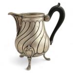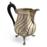 POT A LAIT en argent à décor de godrons tors, reposant sur trois pieds patins, l'anse en bois noirci Poinçon tête de lapin. Orfèvre: Jean François VEYRAT (1832-1840) H.: 145 cm Poids: 205 gr
