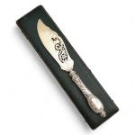 COUTEAU DE SERVICE A POISSON en argent et argent fourré Minerve. Orfèvre: TALLOIS L.: 27 cm Poids brut: 127 gr (dans un écrin à la forme)