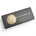 PELLE A FRAISE en argent et vermeil, le cuilleron en forme de coquille Minerve L.: 21.5 cm Poids: 63 gr (dans son écrin d'origine à la forme)