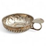 TASTE VIN en argent à décor de cupules et godrons tors, la prise à appui-pouce, le col gravé Minerve D.: 8 cm Poids: 57 gr