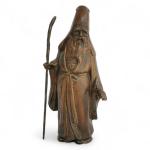 Japon, période Meiji (1868-1912) Okimono en bronze représentant Jurojin ou Gama, l'une des sept divinités du bonheur, dieu de la longévité tenant son bâton de la main droite. H. 32 cm