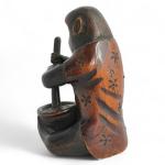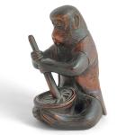 Japon, période Meiji (1868-1912) Okimono, en buis, représentant un singe au mortier. H. 8,7 cm Provenance: Galerie Mingei, catalogue bestiaire japonais, n°13, jeudi 24 mars 2011