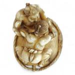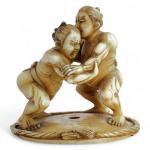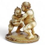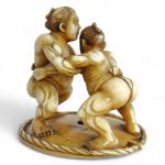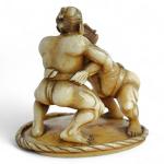 Okimono, en ivoire, représentant deux sumotori aux prises.