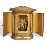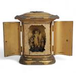 Japon, période Meiji (1868-1912) Butsudan en bois laqué or, ouvrant à deux portes sur Fudo Myoo H. 18 cm