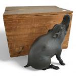 Japon, période Meiji (1868-1912) Okimono en bronze représentant un sanglier appelé Onishishi. H. 20 cm Provenance: Certificat de la Galerie Mingei