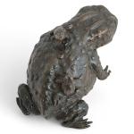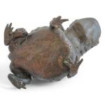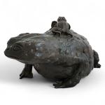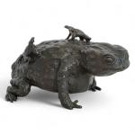 Japon, période Meiji (1868-1912) Okimono en bronze, représentant un crapaud, sur le dos duquel reposent deux petites grenouilles. L. 11 cm