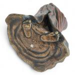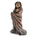 Japon, XXe Statuette en cuivre, laqué brun rouge, représentant Daruma. H. 38 cm